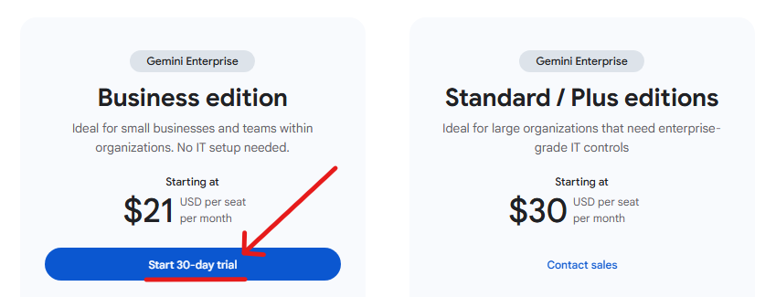 فعال‌سازی 30 روز Free Trial Gemini Enterprise